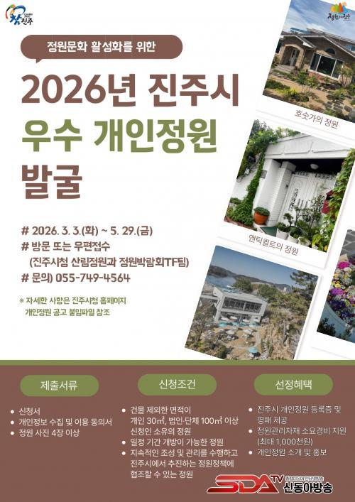 [½Åµ¿¾Æ¹æ¼Û °æ³²ÁøÁÖ=±è¸í¼ö±âÀÚ] ÁøÁֽô ½Ã¹ÎÀÌ Á¶¼º¡¤°ü¸®ÇÏ´Â ¿ì¼ö °³ÀÎÁ¤¿øÀ» ¹ß±¼Çϰí Á¤¿ø¹®È­ È®»ê°ú °ü±¤ÀÚ¿øÈ­¸¦ µµ¸ðÇϱâ À§ÇØ ¡®2026³â ÁøÁֽà ¿ì¼ö °³ÀÎÁ¤¿ø¡¯À» ¸ðÁýÇÑ´Ù.