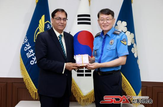 7¿ù 11ÀÏ ÁÖÇÑ Àεµ ´ë»ç°ü¿¡¼ ¾Æ¹Ô Äí¸¶¸£ ´ë»ç°¡ ÇØ¾ç°æÂûûÀ» ¹æ¹®ÇÏ¿© ±è¿ëÁø ÇØ¾ç°æÂûûÀå°ú ÇÔ²² ¾ç±¹ ÇØ¾ç Çù·Â ¹æ¾È ³íÀÇ ÇÏ´Â ¶æ ±íÀº ÀÚ¸®¸¦ ¸¶·ÃÇÏ¿´´Ù.