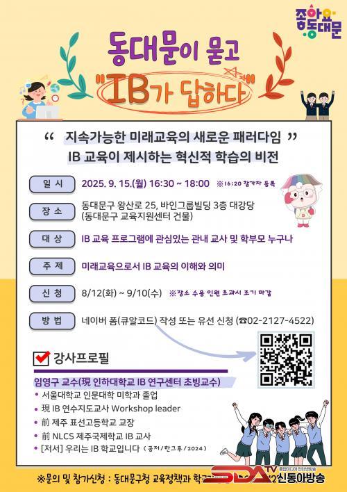 ¼¿ï½Ã±³À°Ã»Àº 2025³â °ø¸ð¸¦ ÅëÇØ IB Èĺ¸Çб³ Æ÷ÇÔ 91±³·Î È®´ëÇϸç, ¼¿ï ¹Ì·¡Çü Çб³ ±³À° üÁ¦(KB, Çѱ¹Çü ¹ÙÄ®·Î·¹¾Æ) ±¸ÇöÀ» ÃßÁøÇϰí ÀÖ´Ù. 2025 ¼¿ï½Ã±³À°Ã» IB °ü½É¡¤Èĺ¸Çб³¿¡´Â µ¿´ë¹®±¸ ÈÖ°æ¿©ÁßÀÌ ¼±Á¤µÈ ¹Ù ÀÖ´Ù.
