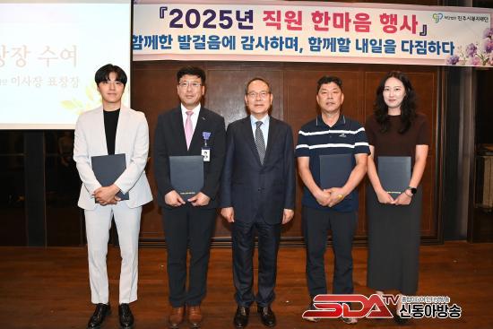[½Åµ¿¾Æ¹æ¼Û °æ³²ÁøÁÖ=³²±Ã¿µ±â±âÀÚ] ÁøÁֽú¹ÁöÀç´ÜÀº 8ÀÏ Á¦À̽ºÄù¾îÈ£ÅÚ 4Ãþ ¿¬È¸Àå¿¡¼­¡®2025³â Á÷¿ø ÇѸ¶À½ Çà»ç¡¯¸¦ °³ÃÖÇØ Àç´Ü °ü°èÀÚ¿Í 8°³ ¼öŹ¿î¿µ½Ã¼³ Àü Á÷¿ø µî ¾à 100¸íÀÌ Âü¼®ÇÑ °¡¿îµ¥ ¼ÒÅë°ú È­ÇÕÀÇ ÀåÀ» ¿­¾ú´Ù.