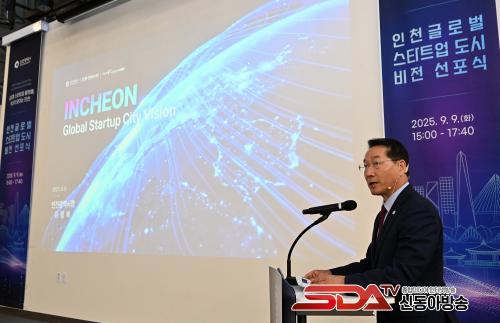 »çÁø=À¯Á¤º¹ ÀÎõ±¤¿ª½ÃÀåÀÌ 9ÀÏ ÀÎõ½ºÅ¸Æ®¾÷ÆÄÅ©¿¡¼­ ¿­¸° 'ÀÎõ ±Û·Î¹ú ½ºÅ¸Æ®¾÷ µµ½ÃºñÀü ¼±Æ÷½Ä'¿¡¼­ 'ÀÎõ½Ã â¾÷ºñÀü'À» ¹ßÇ¥Çϰí ÀÖ´Ù.