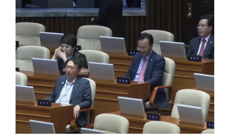 ÀÎÅÍ³Ý ¾ð·Ð '¹Ìµð¾î¸ù±¸' Ä«¸Þ¶ó°¡ ±¹¹ÎÀÇÈû ÀǼ®À» ÃÔ¿µÇÏ´ø Áß ÇØ´ç Àå¸éÀ» Àâ¾Æ³½ °ÍÀ¸·Î, ¼Û¾ð¼®ÀÌ ÀÚ¸®¿¡ ¾ÉÀº ä "¾Æ, Á¦¹ß ±×·¡ µÆÀ¸¸é ÁÁ¾ÒÀ»°É"À̶ó°í °íÇÔÀ» Ä¡ÀÚ, ¾ÕÀÚ¸®¿¡ ÀÖ´ø °°Àº ´ç À¯»ó¹üÀÌ ¼Û¾ð¼®À» µ¹¾Æº¸°í ¾¿ ¿ôÀ¸¸ç ÀÚ¸®¿¡¼­ ÀϾ ȸÀÇÀå ¹ÛÀ¸·Î ³ª°¡´Â ¸ð½Àµµ Æ÷ÂøµÈ °ÍÀÌ´Ù.
