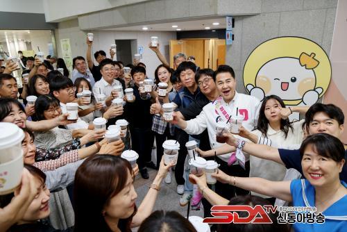 ¿À¾ð¼® µµºÀ±¸Ã»Àå°ú Á÷¿øµéÀÌ Ã»·Å ¹®±¸°¡ ÀûÈù À½·á ÀÜÀ» µé°í »çÁøÀ» Âï°í ÀÖ´Ù(2025. 9. 12. µµºÀ±¸Ã» 2Ãþ ¼±ÀκÀȦ)