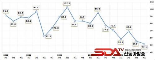 Á¶»ç °á°ú, 2025³â 4/4ºÐ±â ±â¾÷°æ±âÀü¸ÁÁö¼ö(BSI)´Â 52.1·Î ÀüºÐ±â(55.7) ´ëºñ 3.6 Æ÷ÀÎÆ® Ç϶ôÇØ ºÎÁ¤Àû Àü¸ÁÀÌ ´õ¿í £¾îÁø °ÍÀ¸·Î ³ªÅ¸³µ´Ù.