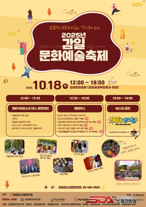 [½Åµ¿¾Æ¹æ¼Û Çϳ²½Ã=À̽ŵ¿±âÀÚ] Çϳ²½Ã °¨ÀÏû¼Ò³â¹®È­ÀÇÁýÀº ¿À´Â 10¿ù 18ÀÏ(Åä) ¿ÀÈÄ 12½ÃºÎÅÍ 18½Ã±îÁö °¨ÀϹ®È­°ø¿ø(°¨Àϰø°øº¹ÇÕû»ç µÞÆí)¿¡¼­ ¡¸Á¦2ȸ °¨ÀϹ®È­¿¹¼úÃàÁ¦¡¹¸¦ °³ÃÖÇÑ´Ù.
