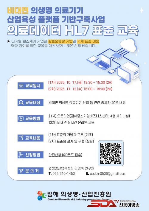[½Åµ¿¾Æ¹æ¼Û °æ³²±èÇØ=³²±Ã¿µ±â±âÀÚ] ±èÇØÀÇ»ý¸í¡¤»ê¾÷ÁøÈï¿øÀº HL7 Korea¿Í Áö³­ÇØ 7¿ù 5ÀÏ Ã¼°áÇÑ ¡¸»óÈ£¿î¿ë¼º½ÃÇè Çù·Âü°è ±¸Ãà ¾÷¹«Çù¾à(MOU)¡¹ÀÇ ÈÄ¼Ó Á¶Ä¡·Î, Àü±¹ ºñ´ë¸é ÀÇ·á±â±â ¹× µðÁöÅÐ ÇコÄÉ¾î °ü·Ã Á¾»çÀÚ¸¦ ´ë»óÀ¸·Î ¡®ÀÇ·áµ¥ÀÌÅÍ HL7 Ç¥ÁØ ±³À° ÇÁ·Î±×·¥¡¯À» 10¿ùºÎÅÍ º»°Ý ¿î¿µÇÑ´Ù°í ¹àÇû´Ù.