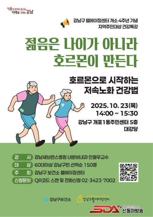 °­¿¬Àº 60¼¼ ÀÌ»ó °­³²±¸¹Î 150¸íÀ» ´ë»óÀ¸·Î ¼±Âø¼øÀ¸·Î ¿î¿µµÈ´Ù. Âü¿©¸¦ ¿øÇÏ´Â ÁÖ¹ÎÀº È«º¸ Æ÷½ºÅÍ ³» QRÄڵ带 ÅëÇÑ ¿Â¶óÀÎ ½ÅûÇϰųª ÀüÈ­(¢Ï02-3423-7002)¸¦ ÅëÇØ Á¢¼öÇÒ ¼ö ÀÖ´Ù.