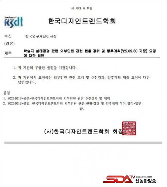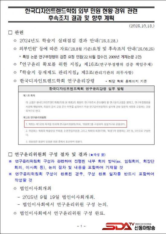 ¡à ¹é½Â¾ÆÀÇ¿ø½ÇÀº ±è°ÇÈñ¾¾ÀÇ À§Á¶‧Ç¥Àý ÀÇȤÀ» ½ÇÀº ÇмúÁö(µðÀÚÀÎÆ÷·³)ÀÇ Çѱ¹µðÀÚÀÎÆ®·»µåÇÐȸ(ÀÌÇÏ ÇÐȸ)°¡ Áö³­ 9¿ù 19ÀÏ ¿¬±¸À±¸®À§¿øÈ¸ ±¸¼ºÀ» ¸¶Ä£ ÈÄ, ¡°10¿ù ÁßÀ¸·Î ¿¬±¸À±¸®À§¿øÈ¸¸¦ °³ÃÖÇØ ±ÔÁ¤¿¡ µû¶ó Á¶Ä¡ÇÒ ¿¹Á¤¡±À̶ó°í Çѱ¹¿¬±¸Àç´Ü¿¡ ȸ½ÅÇÑ »ç½ÇÀ» È®ÀÎÇß´Ù. (÷ºÎ1)