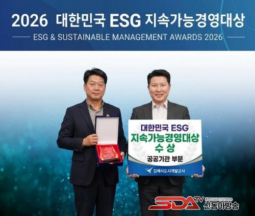 [½Åµ¿¾Æ¹æ¼Û °æ³²±èÇØ=³²±Ã¿µ±â±âÀÚ] ±èÇØ½Ãµµ½Ã°³¹ß°ø»ç°¡ Áö³­ 4ÀÏ ÀÏ»ê ŲŨ½º¿¡¼­ ¿­¸° ¡®2026 ´ëÇѹα¹ ESG Áö¼Ó°¡´É°æ¿µ´ë»ó¡¯ ½Ã»ó½Ä¿¡¼­ °ø°ø±â°ü ºÎ¹® ¡®´ë»ó¡¯À» ¼ö»óÇß´Ù.