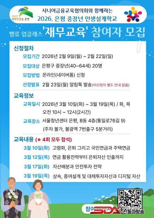 [½Åµ¿¾Æ¹æ¼Û ÀºÆò±¸=À̽ŵ¿±âÀÚ] ¼­¿ï ÀºÆò±¸´Â ÁßÀå³âÃþÀÇ ¾ÈÁ¤ÀûÀÎ Àλý 2¸· Áغñ¸¦ Áö¿øÇϱâ À§ÇØ 2026³â ¡®ÀºÆò ÁßÀå³â Àλý¼³°èÇб³¡¯ À繫¡¤Á÷¾÷¼³°è ±³À° Âü¿©ÀÚ¸¦ ¸ðÁýÇÑ´Ù°í ¹àÇû´Ù.