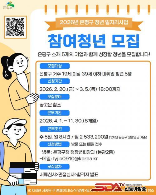 [½Åµ¿¾Æ¹æ¼Û ÀºÆò±¸=À̽ŵ¿±âÀÚ] ¼­¿ï ÀºÆò±¸´Â ¡®2026³â û³â ÀÏÀÚ¸®»ç¾÷¡¯¿¡ Âü¿©ÇÒ Ã»³â 5¸íÀ» ´ÙÀ½ ´Þ 5ÀϱîÁö ¸ðÁýÇÑ´Ù°í ¹àÇû´Ù.