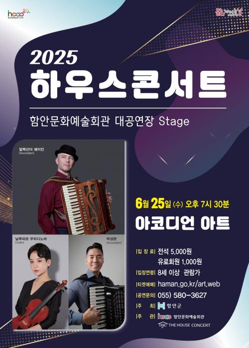 [½Åµ¿¾Æ¹æ¼Û °æ³²ÇÔ¾È=À̽ŵ¿±âÀÚ] ÇԾȹ®È­¿¹¼úȸ°üÀÇ 6¿ù ¹®È­°¡ ÀÖ´Â ³¯ ÇϿ콺Äܼ­Æ® °ø¿¬ÀÌ ¿À´Â 6¿ù 25ÀÏ(¼ö) ¿ÀÈÄ 7½Ã 30ºÐ ÇԾȹ®È­¿¹¼úȸ°ü ´ë°ø¿¬Àå¿¡¼­ ¿­¸°´Ù. À̹ø °ø¿¬Àº ¼¼°èÀûÀÎ ¾ÆÄÚµð¾ð ¿¬ÁÖÀÚ ¾Ë·º»ê´õ ½¦ÀÌŲ°ú ¹Ú¼º¿Ï, ±×¸®°í °¨¼ºÀûÀÎ ¹ÙÀ̿ø®´Ï¡¦