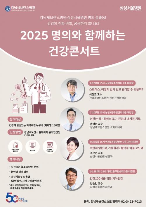 [½Åµ¿¾Æ¹æ¼Û °­³²±¸=À̽ŵ¿±âÀÚ] ²ÞÀÌ ¸ðÀÌ´Â µµ½Ã, ¹Ì·¡¸¦ ±×¸®´Â °­³²±¸°¡ ¿À´Â 6¿ùºÎÅÍ 10¿ù±îÁö ¡®¸íÀÇ¿Í ÇÔ²²ÇÏ´Â °Ç°­ Äܼ­Æ®¡¯¸¦ ¸Å¿ù 1ȸ¾¿ ÃÑ 4ȸ¿¡ °ÉÃÄ °³ÃÖÇÑ´Ù. À̹ø Äܼ­Æ®´Â °­³²¼¼ºê¶õ½ºº´¿ø°ú »ï¼º¼­¿ïº´¿øÀÇ ¸íÀǵéÀ» ÃÊÃ»ÇØ, ´©±¸³ª °ü½É °¡Áú ¸¸¡¦