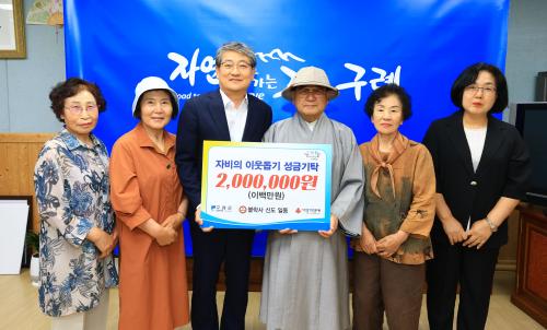 [½Åµ¿¾Æ¹æ¼Û ±¸·Ê=À±¼ºÁÖ ±âÀÚ] Àü³² ±¸·Ê±ºÀº Áö³­ 19ÀÏ(¸ñ) ±¸·Ê±º ºÒ¶ô»ç(ÁÖÁö »óÈÆ ½º´Ô) ½ÅµµµéÀÌ ½Ê½ÃÀÏ¹Ý Á¤¼ºÀ» ¸ðÀº ¼º±Ý 200¸¸¿øÀ» ±¸·Ê±º ÀÌ¿ôµ½±â ¼º±ÝÀ¸·Î ±âŹÇß´Ù°í ¹àÇû´Ù. À̳¯ ±âŹ½Ä¿¡´Â »óÈÆ ÁÖÁö½º´ÔÀ» ºñ·ÔÇØ ½ÅµµÈ¸¿øµéÀÌ ÇÔ²² Âü¼®ÇßÀ¸¸ç, ¡¦