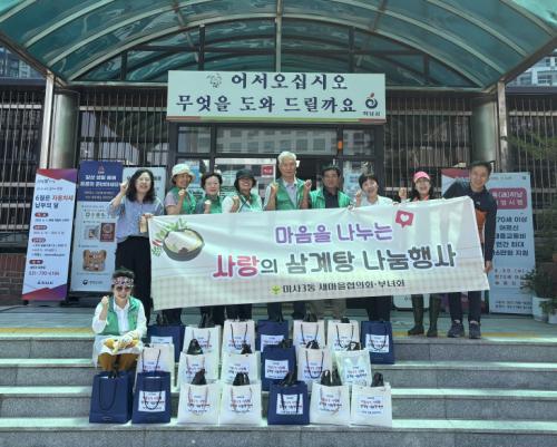 [½Åµ¿¾Æ¹æ¼Û Çϳ²½Ã=À̽ŵ¿±âÀÚ] Áö³­ 6¿ù 23ÀÏ, ¹Ì»ç3µ¿ »õ¸¶À»ÇùÀÇȸ¡¤ºÎ³àȸ´Â ¹«´õ¿î ¿©¸§À» ¸Â¾Æ »ï°èÅÁÀ» ¸¸µé¾î Ãë¾à°èÃþ ¾î¸£½Å¿¡°Ô Àü´ÞÇÏ´Â »ç¶ûÀÇ »ï°èÅÁ ³ª´® Çà»ç¸¦ °¡Á³´Ù. »õ¸¶À»ÇùÀÇȸ¡¤ºÎ³àȸ¿ø 10¿© ¸íÀÌ Âü¿©ÇÏ¿© Á¤¼º²¯ ¸¸µç »ï°èÅÁÀ» °ü³» µ¶°Å¡¦