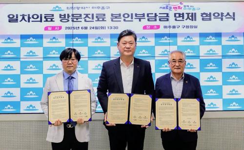[½Åµ¿¾Æ¹æ¼Û ÀÎõ= À±¹Î½Ä ±âÀÚ]ÀÎõ ¹ÌÃßȦ±¸(±¸Ã»Àå ÀÌ¿µÈÆ)´Â Áö³­ 24ÀÏ ±¸Ã»Àå½Ç¿¡¼­ ¹ÌÃßȦ±¸ÇÑÀÇ»çȸ(ȸÀå ½Å¿ø¼ö) ¹× (»ç)´ëÇѳëÀÎȸ ÀÎõ¹ÌÃßȦ±¸Áöȸ(ȸÀå ÀÌÁ¾¿ø)¿Í ¡®ÀÏÂ÷ ÀÇ·á ¹æ¹® Áø·á º»Àκδã±Ý ¸éÁ¦ Çù¾à¡¯À» ü°áÇß´Ù. ¡®ÀÏÂ÷ ÀÇ·á ÇÑÀÇ ¹æ¹® Áø·á¡¦