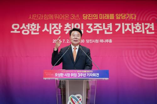 [½Åµ¿¾Æ¹æ¼Û=ÀÌÀçö±âÀÚ] ´çÁø½Ã(½ÃÀå ¿À¼ºÈ¯)°¡ 7¿ù 2ÀÏ ´çÁø½Ãû ÇØ³ª·çȦ¿¡¼­ ¹Î¼±8±â 3Áֳ⠼º°ú¸¦ °øÀ¯ÇÏ´Â ±âÀÚȸ°ßÀ» °³ÃÖÇß´Ù. À̳¯ ±âÀÚȸ°ß¿¡´Â °ü°è °ø¹«¿ø ¹× ¾ð·ÐÀÎ µî ÃÑ 100¿© ¸íÀÌ Âü¼®ÇßÀ¸¸ç, ½ÃÁ¤ È«º¸¿µ»óÀ» ½ÃÀÛÀ¸·Î ¿À¼ºÈ¯ ½ÃÀåÀº 3³â°£ÀÇ ½ÃÁ¤¡¦