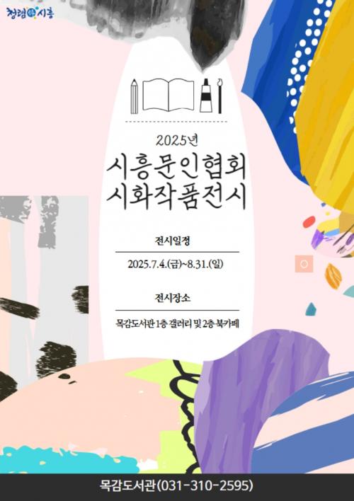 [½Åµ¿¾Æ¹æ¼Û ½ÃÈï½Ã=À̽ŵ¿±âÀÚ] ½ÃÈï½Ã ¸ñ°¨µµ¼­°üÀº 7¿ù 4ÀϺÎÅÍ 8¿ù 31ÀϱîÁö, ½ÃÈï¹®ÀÎÇùȸ°¡ ±âȹÇÑ ¡¯½Ã¿Í ±×¸²ÀÇ ¸¸³²¡® ½ÃÈ­ ÀÛǰÀ» Àü½ÃÇÑ´Ù. ÃÑ 50Á¡ÀÇ ½ÃÈ­¸¦ ÇÑ ´Þ °£°ÝÀ¸·Î ³ª´©¾î, 7¿ù¿¡´Â 25Á¡, 8¿ù¿¡´Â ³ª¸ÓÁö 25Á¡ÀÌ ±³Ã¼ Àü½ÃµÉ ¿¹Á¤ÀÌ´Ù. À̹ø ±â¡¦