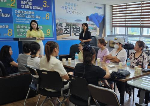 [»êµ¿¾Æ¹æ¼Û ¿©¼ö=±è±â³² ±âÀÚ] Àü¶ó³²µµÀÇȸ º¸°Çº¹Áöȯ°æÀ§¿øÈ¸ ÃÖº´¿ë(´õºÒ¾î¹ÎÁÖ´ç, ¿©¼ö5) À§¿øÀåÀº Áö³­ 7¿ù 6ÀÏ °áÈ¥ÀÌÁÖ¿©¼º°ú ÇÔ²² ¿Ü±¹ÀÎ °èÀý±Ù·ÎÀÚ Á¦µµ °³¼±°ú ¹üÁË¿¹¹æÀ» À§ÇÑ °£´ãȸ¸¦ °®°í ÇØ¹ý ã±â¿¡ ³ª¼¹´Ù. À̳¯ °£´ãȸ´Â ¿©¼öÀÌÁֹμ¾ÅÍ¿¡¼­ ÁÖ¡¦