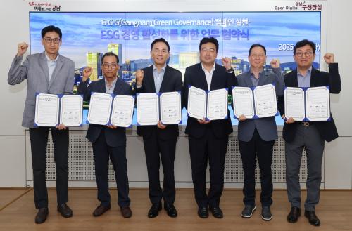 [½Åµ¿¾Æ¹æ¼Û °­³²±¸=À̽ŵ¿±âÀÚ] ²ÞÀÌ ¸ðÀÌ´Â µµ½Ã, ¹Ì·¡¸¦ ±×¸®´Â °­³²±¸°¡ 7¿ù 8ÀÏ ±¸Ã»¿¡¼­ °ü³» ´ëÇü °ÇÃà°ø»çÀåÀÇ ½Ã°ø»ç 5°÷°ú ¡®G.G.G.(Gangnam Green Governance) ½Çõ Ä·ÆäÀÎ ¹× ESG °æ¿µ Ȱ¼ºÈ­¸¦ À§ÇÑ °øµ¿ Çù¾à¡¯À» ü°áÇß´Ù. Çù¾à¿¡ Âü¿©ÇÑ ±â¾÷Àº »ï¼º¹°»ê¡¦