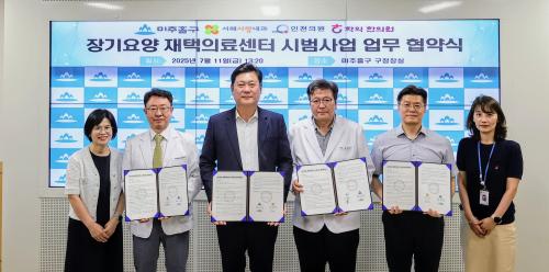 [½Åµ¿¾Æ¹æ¼Û ÀÎõ= À±¹Î½Ä ±âÀÚ]ÀÎõ ¹ÌÃßȦ±¸(±¸Ã»Àå ÀÌ¿µÈÆ)´Â 11ÀÏ ±¸Ã»Àå½Ç¿¡¼­ ¡®Àå±â¿ä¾ç ÀçÅÃÀÇ·á¼¾ÅÍ ½Ã¹ü »ç¾÷¡¯ ÃßÁøÀ» À§ÇØ Áö¿ª ÀÇ·á±â°üÀÎ ¼­ÇØ»ç¶û³»°úÀÇ¿ø(´ëÇ¥ ¹Ú±ÙÈ£), ÀÎõÀÇ¿ø(´ëÇ¥ ±èû±â), ÇÐÀÍÇÑÀÇ¿ø(´ëÇ¥ Ȳº´Ãµ)°ú ¾÷¹«Çù¾àÀ» ü°áÇß´Ù. ÀÌ¡¦