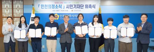 [½Åµ¿¾Æ¹æ¼Û ÀÎõ= À±¹Î½Ä ±âÀÚ]ÀÎõ±¤¿ª½ÃÀÇȸ(ÀÇÀå Á¤ÇرÇ)´Â 16ÀÏ ÀÇȸ Á¢°ß½Ç¿¡¼­ ¡®ÀÎõÀÇÁ¤¼Ò½Ä ½Ã¹Î±âÀÚ´Ü(10¸í)¡¯ À§Ã˽ÄÀ» °³ÃÖÇß´Ù. À̹ø¿¡ À§ÃËµÈ 10¸íÀÇ ½Ã¹Î±âÀÚ´ÜÀº ³»³â 6¿ù 30ÀϱîÁö ¾à 1³â°£ Ȱµ¿Çϸç, ½Ã¹ÎÀÇ ½Ã¼±¿¡¼­ ÀÎõ½ÃÀÇȸÀÇ ÀÇÁ¤ Ȱµ¿°ú ¡¦