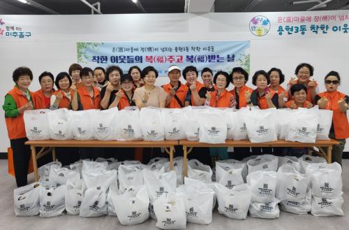 [½Åµ¿¾Æ¹æ¼Û ÀÎõ= À±¹Î½Ä ±âÀÚ]¹ÌÃßȦ±¸ ¿ëÇö3µ¿ Áö¿ª»çȸº¸ÀåÇùÀÇü(À§¿øÀå ±èÀ¯°æ)´Â Ãʺ¹À» ¾ÕµÐ Áö³­ 18ÀÏ ¡®ÂøÇÑ ÀÌ¿ôµéÀÇ º¹(ÜØ) ÁÖ°í º¹(ÜØ) ¹Þ´Â ³¯¡¯ Çà»ç¸¦ ÁøÇàÇß´Ù. À̹ø Çà»ç´Â °ü³» Ãë¾à°èÃþ 90¼¼´ë¿¡ »ï°èÅÁ ¹× °èÀý ±èÄ¡¸¦ Á÷Á¢ Àü´ÞÇÏ°í ¾ÈºÎ¸¦ ¡¦
