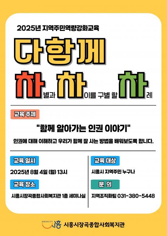 [½Åµ¿¾Æ¹æ¼Û ½ÃÈï½Ã=À̽ŵ¿±âÀÚ] ½ÃÈï½ÃÀå°îÁ¾ÇÕ»çȸº¹Áö°üÀº ¿À´Â 8¿ù 4ÀÏ ¿ÀÈÄ 1½Ã, Áö¿ªÁÖ¹ÎÀÇ À뱂 °¨¼ö¼ºÀ» ³ôÀÌ°í °øµ¿Ã¼ ÀǽÄÀ» °­È­Çϱâ À§ÇÑ À뱂 ±³À°À» º¹Áö°ü 1Ãþ ¼¼¹Ì³ª½Ç¿¡¼­ ÁøÇàÇÑ´Ù. À̹ø ±³À°Àº ¡®ÇÔ²² ¾Ë¾Æ°¡´Â À뱂 À̾߱⡯¸¦ ÁÖÁ¦·Î, Ã¥°ú ¿µ»ó¡¦