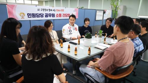 [½Åµ¿¾Æ¹æ¼Û µµºÀ±¸=À̽ŵ¿±âÀÚ] ¿À¾ð¼® µµºÀ±¸Ã»ÀåÀÌ Áö³­ 7¿ù 24ÀÏ ¹Î¿ø ÇöÀå ÃÖÁ¢Á¡¿¡ ÀÖ´Â °ø¹«¿øµé°ú ¸¸³ª ´ëÈ­¸¦ ³ª´³´Ù. ÀÌ ÀÚ¸®´Â ¡®ÇöÀå Áß½ÉÀÇ ¼ÒÅë°ú Âü¿©¡¯¸¦ ÇÙ½É °¡Ä¡·Î »ý°¢ÇÏ´Â ¿À ±¸Ã»ÀåÀÇ ±¸Á¤ öÇп¡¼­ ºñ·ÔµÅ ¸¶·ÃµÆ´Ù. À̳¯ °£´ãȸ¿¡¼­ ¿À ¡¦