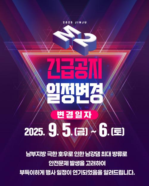 [½Åµ¿¾Æ¹æ¼Û °æ³²ÁøÁÖ=³²±Ã¿µ±â±âÀÚ] ÁøÁÖ½Ã¿Í ÁøÁÖ¹®È­°ü±¤Àç´ÜÀº 8¿ù 8ÀϺÎÅÍ 9ÀϱîÁö 2Àϰ£ °³ÃÖ ¿¹Á¤ÀÌ´ø ¡®ÁøÁÖ M2Æä½ºÆ¼¹ú¡¯À» ´ÙÀ½´Þ 9¿ù 5ÀϺÎÅÍ 6ÀÏ·Î ÀÏÁ¤À» º¯°æÇÏ¿© °³ÃÖÇÑ´Ù°í ¹àÇû´Ù. À̹ø ÀÏÁ¤ º¯°æÀº ÃÖ±Ù ÁýÁßÈ£¿ì·Î ÀÎÇØ ³²°­´ï ¹æ·ù·®(500Åæ)ÀÌ ¡¦