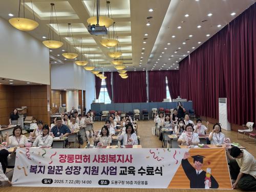 [½Åµ¿¾Æ¹æ¼Û µµºÀ±¸=À̽ŵ¿±âÀÚ] ¼­¿ï µµºÀ±¸°¡ 'Àå·Õ¸éÇã »çȸº¹Áö»ç º¹Áö ÀÏ²Û ¼ºÀå Áö¿ø±³À°' ¼ö·á»ý 32¸íÀ» ¹èÃâÇß´Ù. ÀÌ °¡¿îµ¥ ¼ö·á»ý 2¸íÀÌ Ãë¾÷¿¡ ¼º°øÇÏ¸ç ±³À°ÀÇ ½ÇÈ¿¼ºÀ» ÀÔÁõÇß´Ù. º» ±³À°Àº »çȸº¹Áö»ç ÀÚ°Ý Ãëµæ ÈÄ¿¡µµ ½Ç¹« °æÇè ºÎÁ·À̳ª °æ·Â ´ÜÀý·Î¡¦
