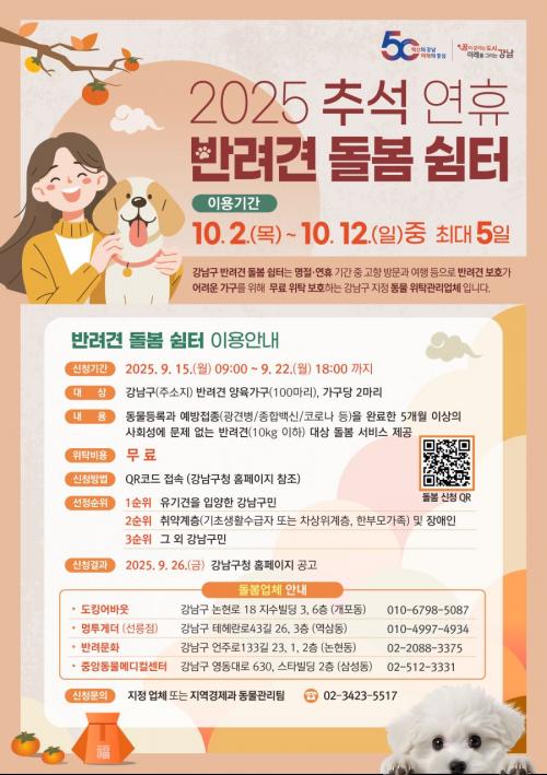 [½Åµ¿¾Æ¹æ¼Û °­³²±¸=À̽ŵ¿±âÀÚ] ²ÞÀÌ ¸ðÀÌ´Â µµ½Ã, ¹Ì·¡¸¦ ±×¸®´Â °­³²±¸°¡ Ãß¼® ¿¬ÈÞ¸¦ ¾ÕµÎ°í ±¸¹ÎµéÀÇ ¹Ý·Á°ß µ¹º½ ºÎ´ãÀ» ´ú±â À§ÇØ ¡®¹Ý·Á°ß µ¹º½ ½°ÅÍ¡¯¸¦ ¿î¿µÇÑ´Ù. ½ÅûÀº 9¿ù 15ÀϺÎÅÍ 22ÀϱîÁö ¹ÞÀ¸¸ç, ¼±Á¤µÈ ¹Ý·Á°ßÀº 10¿ù 2ÀϺÎÅÍ 12ÀÏ »çÀÌ ÃÖ´ë 5Àϰ£ ¹«¡¦