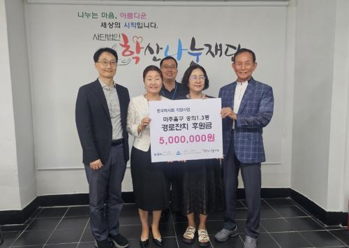 ¼þÀÇ1¡¤3µ¿ Áö¿ª»çȸº¸ÀåÇùÀÇü, Çѱ¹¸¶»çȸ ÀÎõ ¹ÌÃßȦÁö»ç·ÎºÎÅÍ ±âºÎ±Ý 500¸¸ ¿ø Àü´Þ¹Þ¾Æ