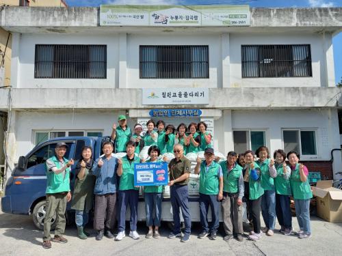 [½Åµ¿¾Æ¹æ¼Û °æ³²ÇÔ¾È=À̽ŵ¿±âÀÚ] Ä¥¿øÀ¾ »õ¸¶À»ÇùÀÇȸ¿Í ºÎ³àȸ°¡ ¹ÎÁ· ´ë¸íÀý Ãß¼®À» ¸Â¾Æ µû¶æÇÑ »ç¶û ³ª´®À» ½ÇõÇß´Ù. Áö³­ 23ÀÏ, Ä¥¿øÀ¾ ÀÚ»ý´Üü »ç¹«½Ç ¾Õ¿¡¼­ ¿­¸° 'Ãß¼® ¸íÀý »ç¶ûÀÇ ½Ò ³ª´®' Çà»ç¸¦ ÅëÇØ ¹é¹Ì 10kg ÃÑ 100Æ÷¸¦ Áö¿ª ³» ¾î·Á¿î ÀÌ¿ô¿¡°Ô¡¦