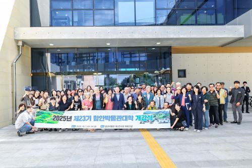 [½Åµ¿¾Æ¹æ¼Û °æ³²ÇÔ¾È=À̽ŵ¿±âÀÚ] ÇԾȱºÀº Áö³­ 1ÀÏ ¼ö°­»ý°ú °ü°è Á÷¿ø 90¿© ¸íÀÌ Âü¼®ÇÑ °¡¿îµ¥ 2025³â Á¦23±â ÇԾȹڹ°°ü´ëÇÐ °³°­½ÄÀ» ¿­°í 8ÁÖ°£ÀÇ ±³À° ÀÏÁ¤¿¡ µé¾î°¬´Ù°í ¹àÇû´Ù. Á¦23±â ÇԾȹڹ°°ü´ëÇÐÀº ¡®ÇÔ¾È, °íµµ(ͯԴ)¸¦ ±â´Ù¸®¸ç¡¯¸¦ ÁÖÁ¦·Î °­ÀÇ¡¦