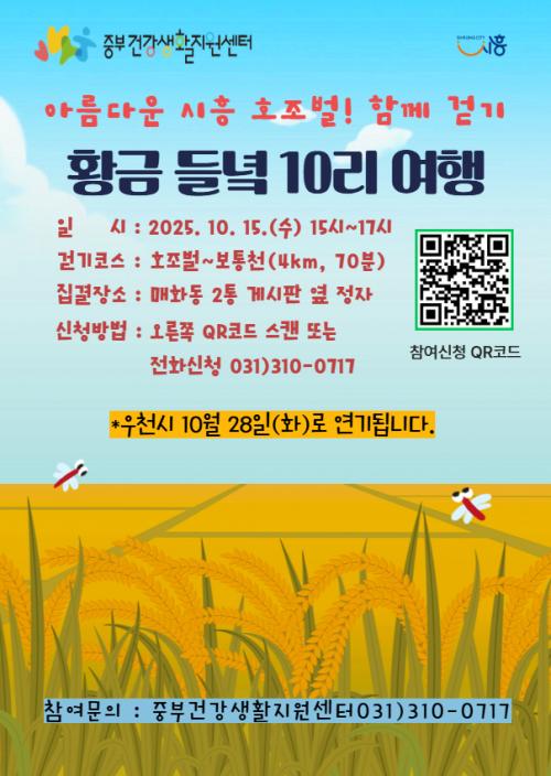[½Åµ¿¾Æ¹æ¼Û ½ÃÈï½Ã=À̽ŵ¿±âÀÚ] ½ÃÈï½Ã´Â ¿À´Â 10¿ù 15ÀÏ ¿ÀÈÄ 3½ÃºÎÅÍ 5½Ã±îÁö È£Á¶¹ú ÀÏ´ë¿¡¼­ ¡®È²±Ý µé³è 10¸® ¿©Çà °È±â Çà»ç¡¯¸¦ ¿¬´Ù. Âü°¡ÀÚµéÀº ¸ÅÈ­µ¿ 2Åë °Ô½ÃÆÇ ¿· Á¤ÀÚ¸¦ Ãâ¹ßÇØ È£Á¶¹ú¿¡¼­ º¸Åëõ±îÁö ¿Õº¹ ¾à 4§° ±¸°£(¼Ò¿ä ½Ã°£ ¾à 70ºÐ)À» °ÉÀ¸¸ç,¡¦