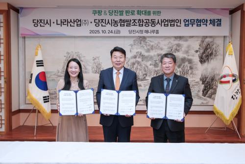 [½Åµ¿¾Æ¹æ¼Û=ÀÌÀçö±âÀÚ] ´çÁø½Ã´Â Áö³­ 24ÀÏ ´çÁø½Ãû ÇØ³ª·çȦ¿¡¼­ ³ª¶ó»ê¾÷ ÁÖ½Äȸ»ç(´ëÇ¥ÀÌ»ç ÇѼÛÀÌ), ´çÁø½Ã³óÇù½ÒÁ¶ÇÕ°øµ¿»ç¾÷¹ýÀÎ(´ëÇ¥ÀÌ»ç ¹Ú±¤¼­)°ú ÇÔ²² ¡®´çÁø½Ò ÆÇ·Î È®´ë¸¦ À§ÇÑ »ó»ý¹ßÀü ¾÷¹«Çù¾à¡¯À» ü°áÇß´Ù°í 27ÀÏ ¹àÇû´Ù. À̳¯ Çù¾à½Ä¿¡´Â ¿À¼º¡¦