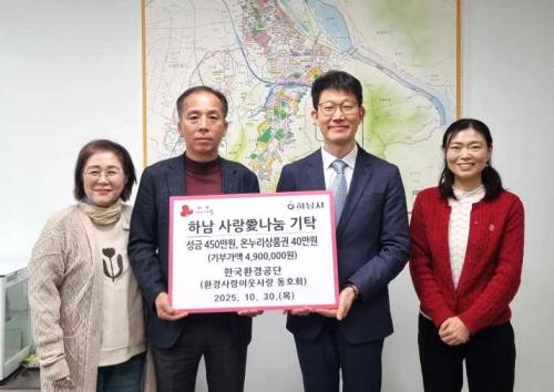 [½Åµ¿¾Æ¹æ¼Û Çϳ²½Ã=À̽ŵ¿±âÀÚ] Áö³­ 30ÀÏ, Çѱ¹È¯°æ°ø´Ü ¡®È¯°æ»ç¶û ÀÌ¿ô»ç¶û¡¯ µ¿È£È¸´Â Çϳ²½Ã °ü³» Àú¼Òµæ ¾Æµ¿µé¿¡°Ô ¼º±Ý 450¸¸¿ø°ú ¿Â´©¸®»óǰ±Ç 40¸¸¿øÀ» Àü´ÞÇÏ°í ±âŹ½Ä¸¦ °¡Á³´Ù. À̳¯ ±âŹ½Ä¿¡´Â Á¶¿¬½Ä º¹Áö±¹ÀåÀ» ºñ·ÔÇØ ¼ÛÀιü ȸÀå, À̼øÁø Ãѹ« µî¡¦
