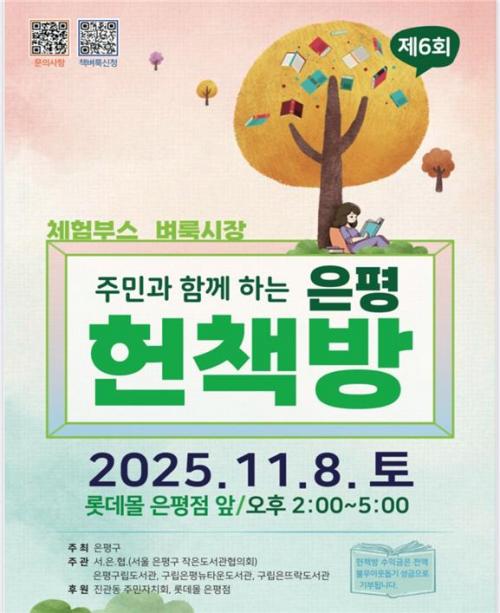 [½Åµ¿¾Æ¹æ¼Û ÀºÆò±¸=À̽ŵ¿±âÀÚ] ¼­¿ï ÀºÆò±¸´Â ÀºÆò±¸¸³µµ¼­°üÀÌ ¿À´Â 8ÀÏ ¿ÀÈÄ 2½ÃºÎÅÍ 5½Ã±îÁö ±¸ÆÄ¹ß ÀºÆò ·Ôµ¥¸ô ¾Õ¸¶´ç¿¡¼­ Á¦6ȸ Áö¿ª Áֹΰú ÇÔ²²ÇÏ´Â ¡®ÀºÆò ÇåÃ¥¹æ¡¯À» ¿î¿µÇÑ´Ù°í ¹àÇû´Ù. ¡®ÀºÆò ÇåÃ¥¹æ¡¯Àº Áö¿ª ³» °ø°øµµ¼­°ü°ú ÀÛÀºµµ¼­°üÀÌ ¿¬°èÇØ Áö¡¦