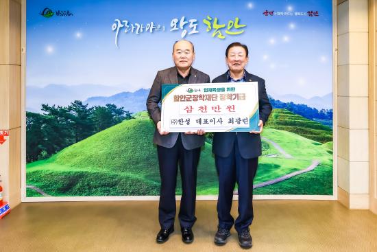 [½Åµ¿¾Æ¹æ¼Û °æ³²ÇÔ¾È=À̽ŵ¿±âÀÚ] ÇԾȱº ´ë»ê¸é¿¡ ¼ÒÀçÇÑ ¹æ»ê¾÷ü (ÁÖ)ÇѼº ÃÖ±¤·Ã ´ëÇ¥´Â 21ÀÏ, ÇԾȱºÃ»À» ¹æ¹®ÇØ Áö¿ªÀÎÀçÀ°¼ºÀ» À§ÇÑ ÀåÇбâ±Ý 3õ¸¸¿øÀ» ÇԾȱº ÀåÇÐÀç´Ü¿¡ ±âŹÇß´Ù. ÇԾȱº Ä¥¼­¸é Ãâ½ÅÀÎ ÃÖ±¤·Ã ȸÀåÀº ¿À·§µ¿¾È Ä¥¼­¸é°ú Ä¥¿øÀ¾, ´ë»ê¸é¿¡ ÀÌ¡¦