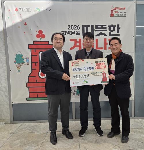 [½Åµ¿¾Æ¹æ¼Û ÀºÆò±¸=À̽ŵ¿±âÀÚ] ¼­¿ï ÀºÆò±¸ ³ì¹øµ¿Àº Áö³­ 4ÀÏ »çȸÀû±â¾÷ ÁÖ½Äȸ»ç ¸í¼ºÇпøÀ¸·ÎºÎÅÍ µû¶æÇÑ °Ü¿ï³ª±â ¼º±Ý 1¹é¸¸ ¿øÀ» Àü´Þ¹Þ¾Ò´Ù°í ¹àÇû´Ù. ¸í¼ºÇпøÀº ÃÊÁß°í ÇлýÀ» ´ë»óÀ¸·Î ±³À°°ú ÀÔ½ÃÄÁ¼³ÆÃÀ» Çϰí ÀÖ´Ù. ¸Å³â Èñ¸Á¿Âµ¹ µû¶æÇÑ °Ü¿ï³ª±â »ç¡¦