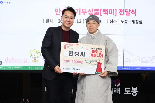 [½Åµ¿¾Æ¹æ¼Û µµºÀ±¸=À̽ŵ¿±âÀÚ] ¼­¿ï µµºÀ±¸(±¸Ã»Àå ¿À¾ð¼®)´Â Áö³­ 12¿ù 12ÀÏ ¸¸¼º»ç·ÎºÎÅÍ ¹é¹Ì 1,000kgÀ» Àü´Þ¹Þ¾Ò´Ù. ¸¸¼º»ç´Â µµºÀ±¸ ¹æÇÐ2µ¿¿¡ ÀÖ´Â »çÂû·Î Áö³­ÇØ¿¡ ÀÌ¾î ¿ÃÇØµµ ¹é¹Ì¸¦ ±âºÎÇß´Ù. Àü´Þ¹ÞÀº ½ÒÀº Á¤½ÅÀçȰ½Ã¼³ µî Áö¿ª ³» »çȸº¹Áö±â°ü°ú Àú¼Ò¡¦