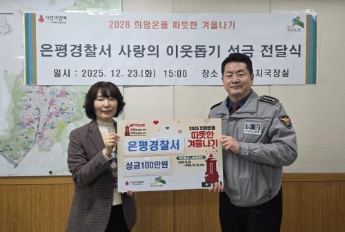 [½Åµ¿¾Æ¹æ¼Û ÀºÆò±¸=À̽ŵ¿±âÀÚ] ¼­¿ï ÀºÆò±¸´Â Áö³­ 23ÀÏ ÀºÆò°æÂû¼­¿Í ¡®2026 Èñ¸Á¿Âµ¹ µû¶æÇÑ °Ü¿ï³ª±â »ç¶ûÀÇ ÀÌ¿ôµ½±â¡¯ ¼º±Ý Àü´Þ½ÄÀ» °¡Á³´Ù°í ¹àÇû´Ù. À̳¯ ÀºÆò°æÂû¼­´Â ¼º±Ý 1¹é¸¸ ¿øÀ» Àü´ÞÇß°í, ¼º±ÝÀº ³ª´®³×Æ®¿öÅ© »ç¾÷À» ÅëÇØ °ü³» µµ¿òÀÌ ÇÊ¿äÇÑ Àú¼Ò¡¦