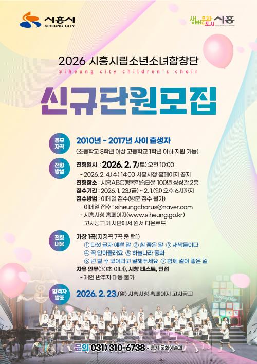 [½Åµ¿¾Æ¹æ¼Û ½ÃÈï½Ã=À̽ŵ¿±âÀÚ] ½ÃÈï½Ã´Â ½ÃÈïÀÇ ¹®È­»çÀý´ÜÀ¸·Î¼­ ¾Æ¸§´Ù¿î È­À½À» ÇÔ²² ¸¸µé¾î °¥ ¡®2026³âµµ ½ÃÈï½Ã¸³¼Ò³â¼Ò³àÇÕâ´Ü¡¯ÀÇ ½Å±Ô´Ü¿øÀ» °ø°³ ¸ðÁýÇÑ´Ù. 2019³â 5¿ù¿¡ â´ÜµÈ ½ÃÈï½Ã¸³¼Ò³â¼Ò³àÇÕâ´ÜÀº Á¤±â¤ý±âȹ ¿¬ÁÖȸ¿Í ±¹³»¿Ü °ø¿¬À» ÅëÇØ Áö¿ª¡¦