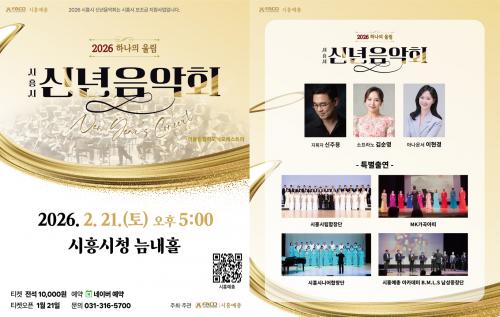 [½Åµ¿¾Æ¹æ¼Û ½ÃÈï½Ã=À̽ŵ¿±âÀÚ] ½ÃÈï½Ã°¡ Áö¿øÇϰí (»ç)Çѱ¹¿¹¼ú¹®È­´ÜüÃÑ¿¬ÇÕȸ ½ÃÈïÁöȸ¿¡¼­ ÁÖ°üÇÏ´Â ¡®2026 ½ÃÈï½Ã ½Å³âÀ½¾Çȸ- ÇϳªÀÇ ¿ï¸²¡¯ÀÌ ¿À´Â 2¿ù 21ÀÏ ¿ÀÈÄ 5½Ã, ½Ãû ´Æ³»È¦¿¡¼­ °³ÃֵȴÙ. À̹ø ½Å³âÀ½¾Çȸ´Â ½ÅÁÖ¿ë ÁöÈÖÀÚÀÇ ÁöÈÖ ¾Æ·¡ ¾î¿ï¸²¿ÀÄɽº¡¦