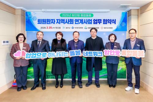 [½Åµ¿¾Æ¹æ¼Û °æ³²ÇÔ¾È=À̽ŵ¿±âÀÚ] ÇԾȱºÀº Áö³­ 25ÀÏ ±ºÃ» 2Ãþ ±º¼ö½Ç¿¡¼­ ¾Æ¶óÇѱ¹º´¿ø, »õ·ÒÀçȰ¿ä¾çº´¿ø, ÇԾȿä¾çº´¿ø°ú ¡®Åð¿øÈ¯ÀÚ Áö¿ª»çȸ ¿¬°è»ç¾÷¡¯ ¾÷¹«Çù¾àÀ» ü°áÇß´Ù°í ¹àÇû´Ù. À̹ø Çù¾àÀº 2026³â 3¿ù 27ÀÏ ½ÃÇàµÇ´Â ¡®ÀÇ·á, ¿ä¾ç µî Áö¿ª µ¹º½ÀÇ ¡¦