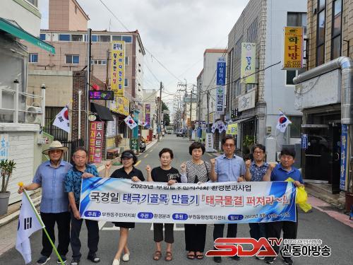 À̳¯ Çà»ç¸¦ À§ÇØ ºÎ¿øµ¿ ÁÖ¹ÎÀÚġȸ À§¿øµéÀº ÁöÁ¤°ñ¸ñÀ» ´Ù´Ï¸ç, »ó°¡ÁÖ¿¡°Ô Çà»çÀÇ Àǹ̸¦ ¼³¸í ․ È«º¸ÇÏ°í ±¹±â °ÅÄ¡´ë¸¦ ¼³Ä¡ÇÏ´Â µî »çÀü ÀÛ¾÷À» ¼öÇàÇßÀ¸¸ç, 15ÀÏ ÀÏÁ¦È÷ ±¹±â°¡ °Ô¾çµÈ ¸ð½ÀÀ» À§ÇØ 14ÀÏ Àú³á ÀÏÀÏÀÌ ±¹±â¸¦ °Ô¾çÇß´Ù.