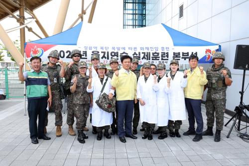 Á¤À¾¿ª¿¡ Æø¹ß¹°ÀÌ ¼³Ä¡µÈ »óȲÀ» °¡Á¤ÇØ ½Ç½ÃµÈ À̳¯ ÈÆ·ÃÀº Æø¹ß¹° ÇöÀå Áø¾Ð ¹× °æ°è¤ý¹æÈ£ Ȱµ¿, ÈÀçÁø¾Ð, Á¤À¾¿ª ÁÖº¯ ÅëÁ¦¼± ¼³Ä¡, ±³ÅëÅëÁ¦ Ȱµ¿, ÀÀ±Þóġ µîÀÇ ¼øÀ¸·Î ½ÇÁ¦ »óȲó·³ ÈÆ·ÃÀ» ÁøÇàÇß´Ù. ƯÈ÷ ½ÇÁ¦ÀûÀÎ ÈÆ·ÃÀ» À§ÇØ ±º µå·ÐÀ» ºñ·ÔÇÑ ±º ÀÛÀüÂ÷·®, ¼øÂûÂ÷, °æÂûº´·Â ¼ö¼ÛÂ÷·®, ¼Ò¹æÂ÷, ÆßÇÁÂ÷, ±¸±ÞÂ÷ µî ¸ðµÎ Â÷·® 13´ë, µå·Ð 1´ëÀÇ Àåºñ°¡ µ¿¿øµÆ´Ù.