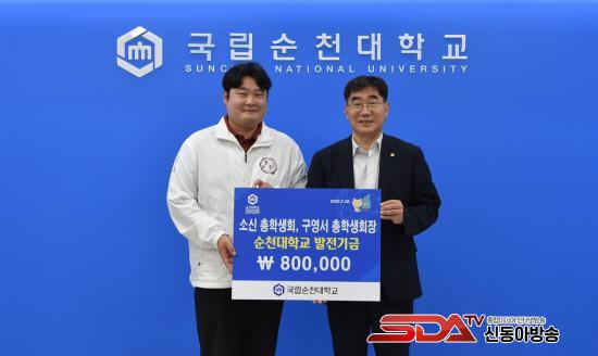 [½Åµ¿¾Æ¹æ¼Û=±è¿ëÈÆ ±âÀÚ] ±¹¸³ ¼øÃµ´ëÇб³(ÃÑÀå À̺´¿î)´Â ±¸¿µ¼­ ÃÑÇлýȸ ȸÀåÀÌ ±Û·ÎÄôëÇÐ30¿¡ ÀÀ¿øÀ» º¸³»°íÀÚ ¼Ò½Å ÃÑÇлýȸ ÀÓ¿øµé°ú ÇÔ²² ´ëÇйßÀü±â±Ý 80¸¸ ¿øÀ» Àü´ÞÇß´Ù°í ¹àÇû´Ù.
