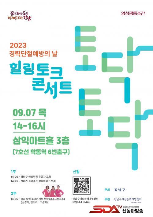 °­³²±¸°¡ ÁÖÃÖÇÏ°í °­³²±¸¿©¼º´É·Â°³¹ß¼¾ÅͰ¡ ÁÖ°üÇÏ´Â À̹ø Çà»ç´Â °æ·Â´ÜÀý ¿¹¹æÀÇ ³¯À» ¸Â¾Æ °æ·Â´ÜÀý ¿©¼ºµéÀÇ »îÀ» ÀÌÇØÇÏ°í »çȸÂü¿©¸¦ Ȱ¼ºÈ­ÇϰíÀÚ ±âȹÇß´Ù. Çà»ç´Â 1,2ºÎ·Î ³ª´², ¾ç¼ºÆòµî À¯°øÀÚ Ç¥Ã¢, °æ·Â´ÜÀý ±Øº¹½ºÅ丮, °ø°¨ Èú¸µ ÅäÅ©Äܼ­Æ® ¡®Åõ¸¾¼î¡¯·Î ÁøÇàÇÑ´Ù.